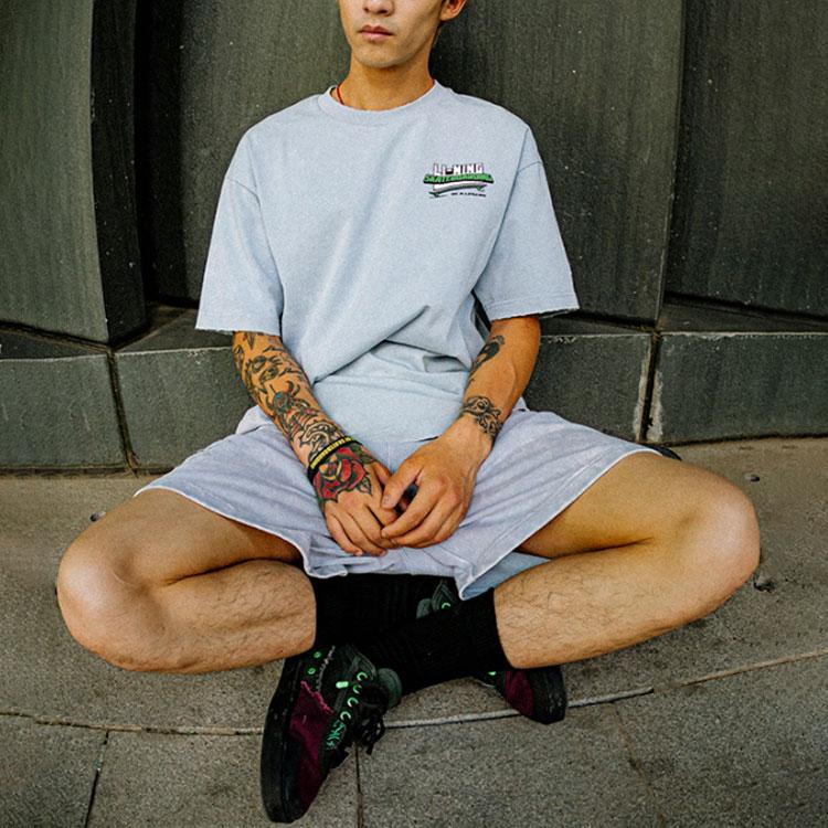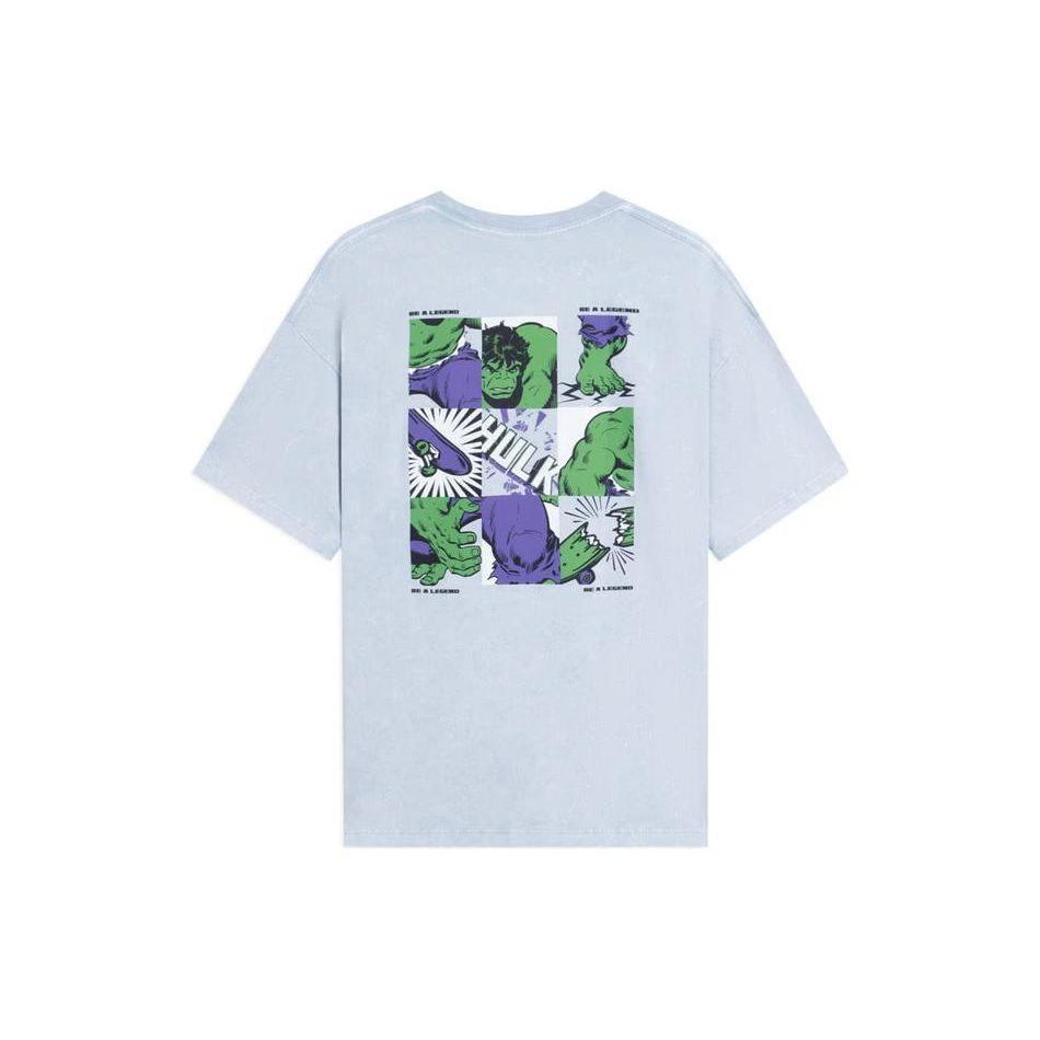 Li-Ning Футболка с круглым вырезом и короткими рукавами с принтом X Marvel Hulk, топы унисекс, туманно-синий AHSSB93-3