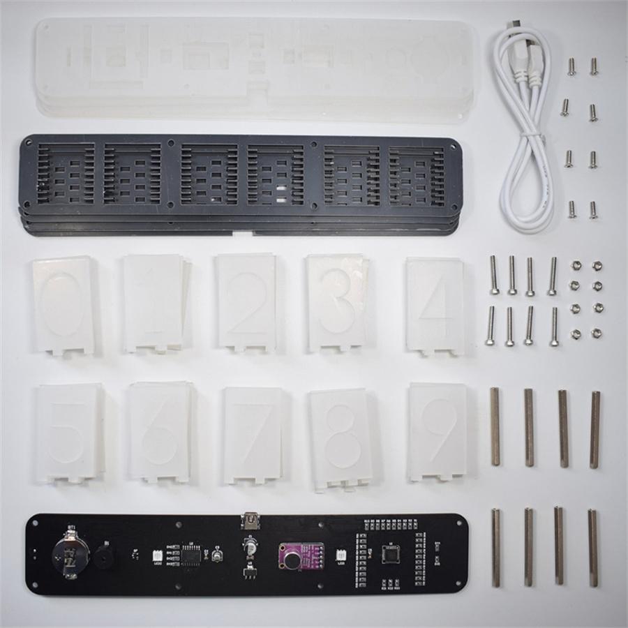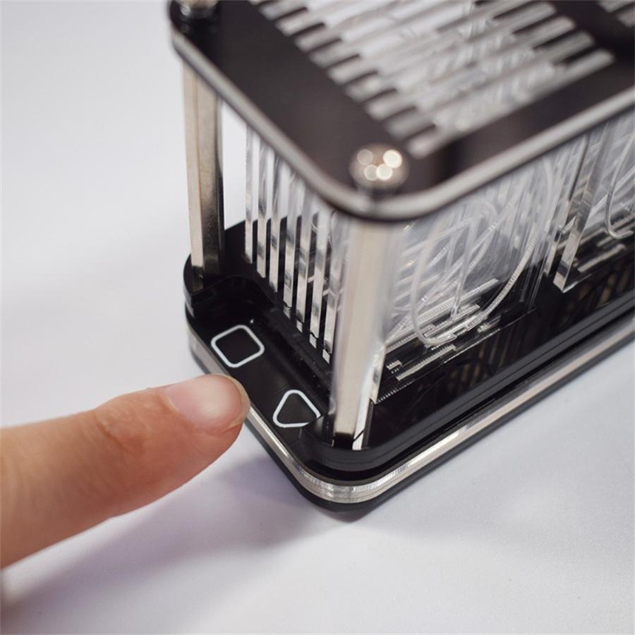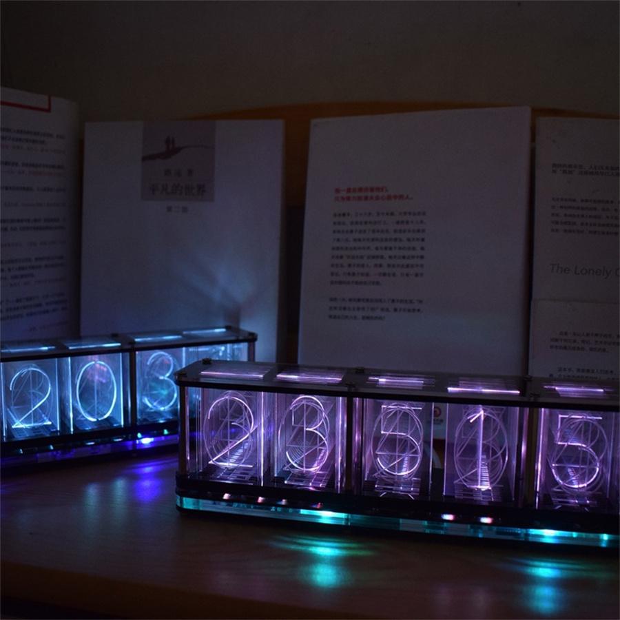 Различные цифры выгравированы на прозрачном акриле, а затем цифровой эффект преломляется яркими RGB-лампами, чтобы имитировать эффект отображения люминесцентной лампы светящихся часов. Каждое число создает различные цвета градиента, формируя цвета радуги и различные цветовые эффекты полярного сияния. Он добавляет побочный световой эффект внизу. Существует множество анимационных эффектов преобразования, отображение цифрового времени и различные переключения анимации.