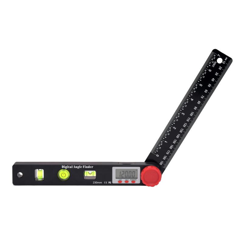 1. Деревообрабатывающий инструмент 4 в 1: два блока (дюйм/мм) линейка / 360 ° транспортир / 3 различных пузырька 90 ° / 180 ° / универсальная комбинация уровней измерения, удобная для измерения внутреннего или внешнего угла. Цифровой гониометр также может использоваться как уровень духа (не цифровой дисплей).