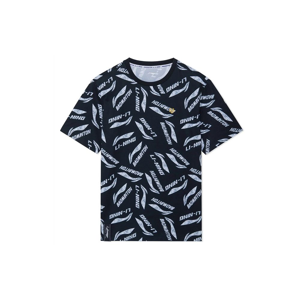 Li-Ning Футболка Sports Life с полноцветным принтом и логотипом, дышащая, с круглым вырезом и коротким рукавом, мужская, черная, AHSR867-5