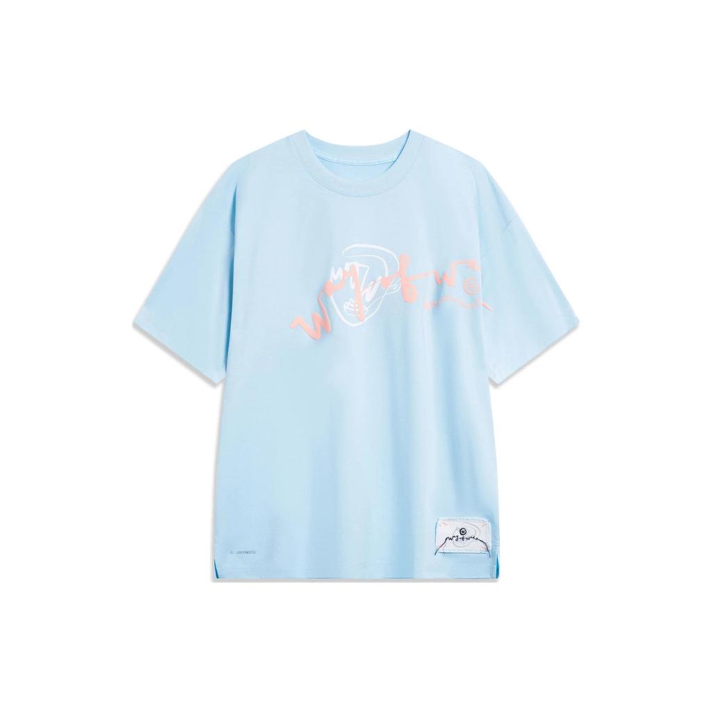 Футболка с короткими рукавами LiNing Ice Sense Letter Pure Color, топы унисекс, светло-темно-синие AHST335-3