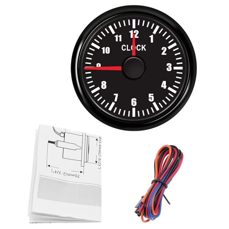 52mm Black Clock Gauges 12 Hours Meter Red Backlight Instrument For Car SUV Boat