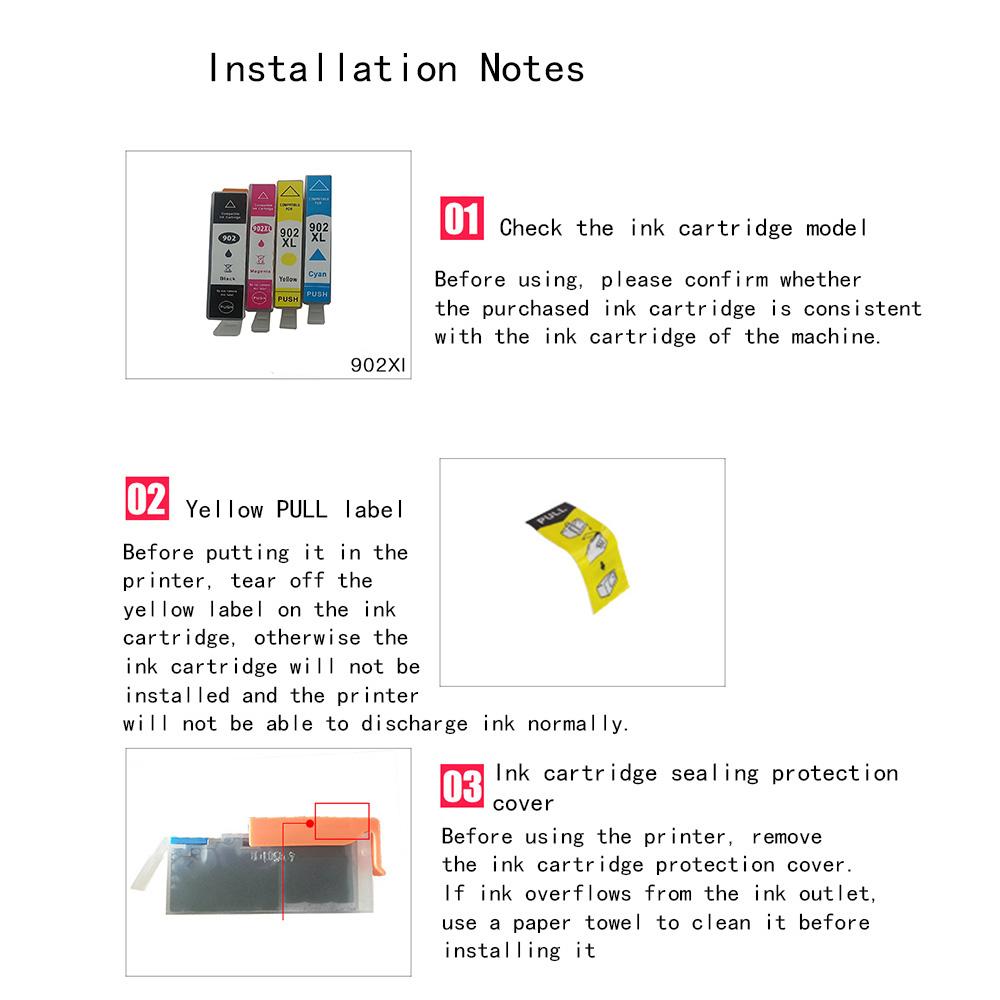 4Pcs 902 Xl Ink Cartridges For HP Officejet Pro 6960 6968 6970 6975 6978 Printer