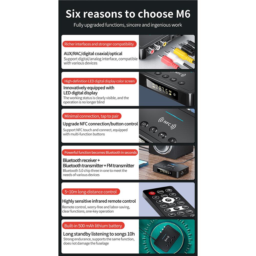 4.Support NFC: Built-in chip, you can directly connect with NFC mobile phones or other Bluetooth devices that support NFC by touching this receiver.