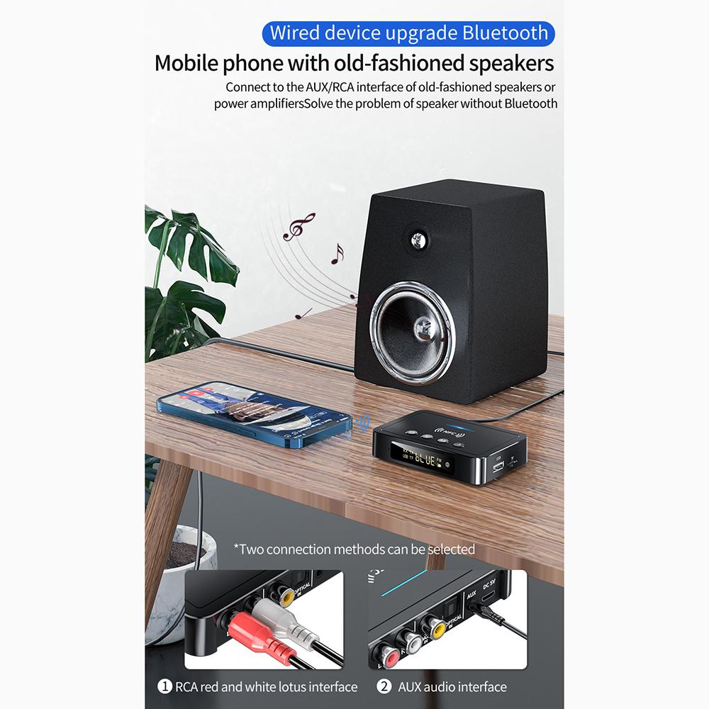 Bluetooth 5.0 Receiver Transmitter FM Stereo AUX 3.5mm Jack RCA Optical Wireless Handsfree Call NFC Bluetooth Audio Adapter For Car Speakers