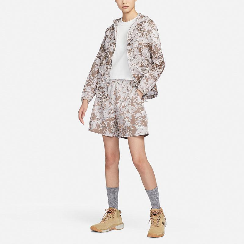 Nike ACG Свободные повседневные тканые шорты с высокой талией и принтом по всей поверхности, женские брюки светло-железно-серого цвета FB7863-012