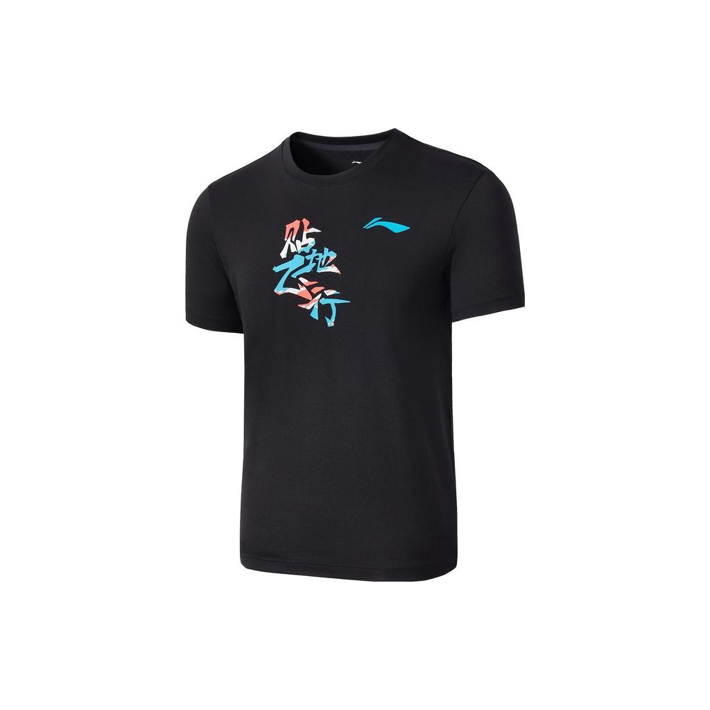 Li-Ning Футболка с логотипом бренда серии для бадминтона, с круглым вырезом и короткими рукавами, с заниженными плечами, топы унисекс, черный AHST361-1