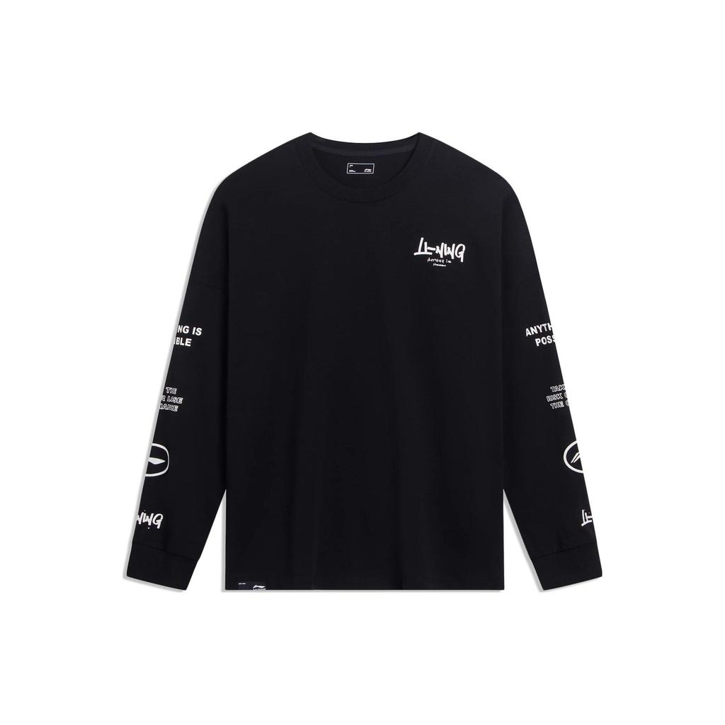 Li-Ning Футболка с круглым вырезом и длинным рукавом с буквенным принтом, мужские топы, черные AHST557-2