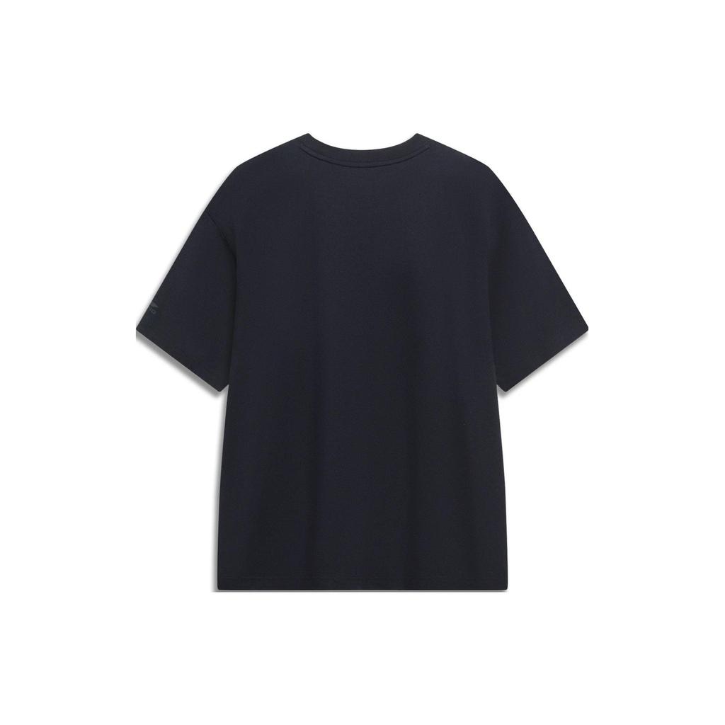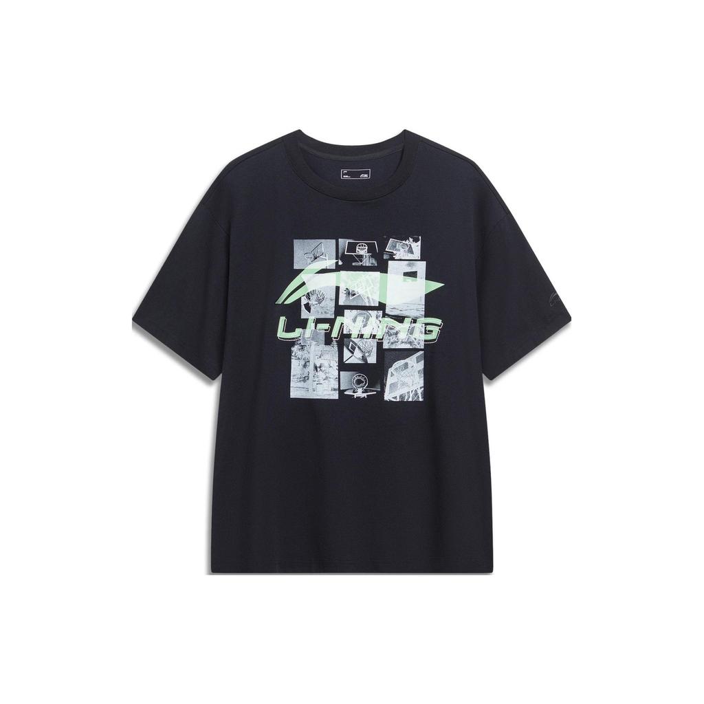 Li-Ning Ретро-логотип с круглым вырезом и короткими рукавами, футболка с заниженными плечами, мужские топы, черный AHST725-1