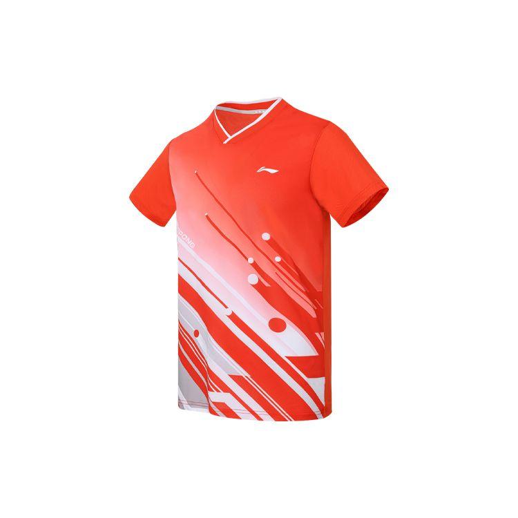 Li-Ning Футболка мужская повседневная спортивная быстросохнущая с коротким рукавом серии Ping Pong, цвет пикантный оранжевый AAYS017-2