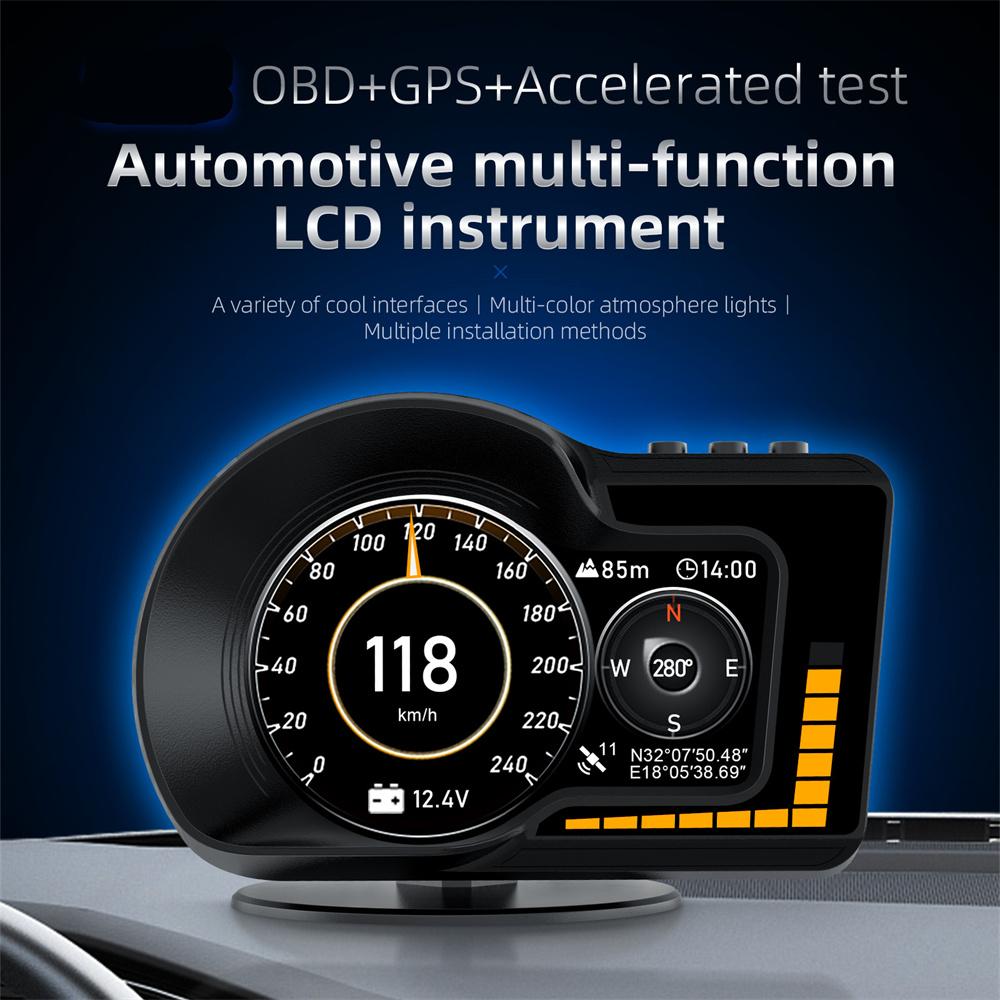 Автомобильный HUD OBD+GPS Умный Цифровой Датчик с Подсветкой 6 Функций Предупреждения Тест Ускорения Тест Торможения