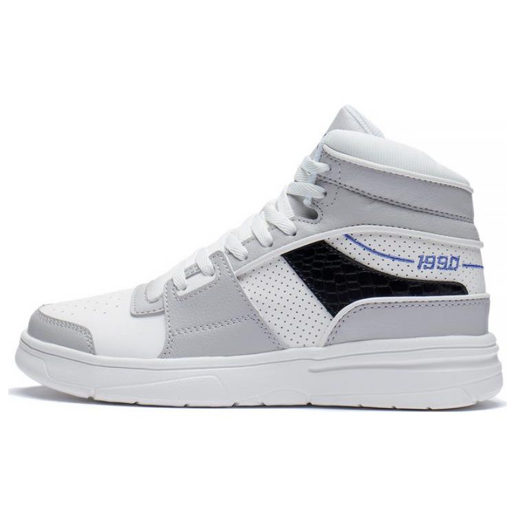 Li Ning Retro 90 Series Удобная повседневная износостойкая амортизирующая нескользящая обувь с высоким берцем для повседневной носки Женская обувь Белый Серый ABCS098-1