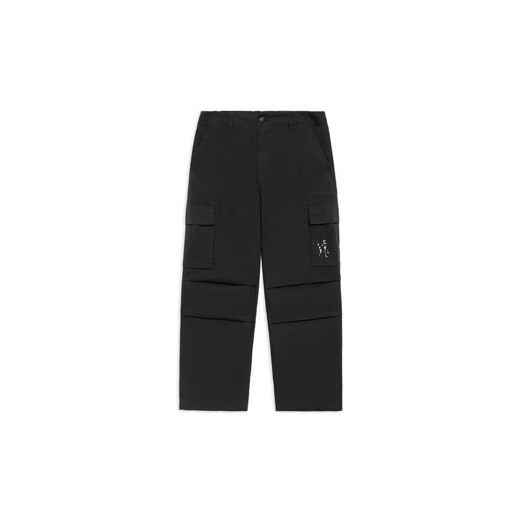 Li-Ning Спортивная модная серия, однотонные прямые повседневные брюки с несколькими карманами, мужские брюки черного цвета AKXS407-1