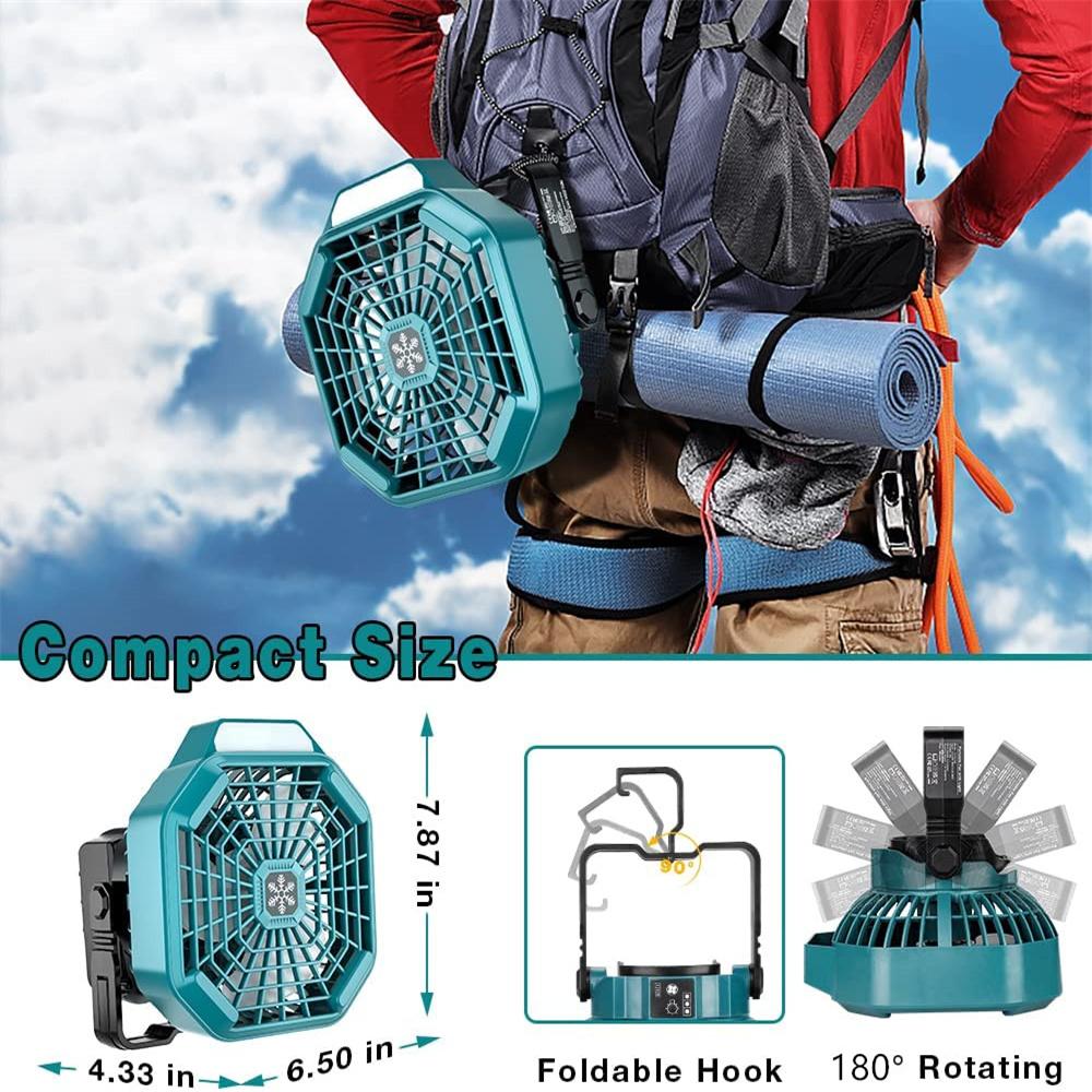 Portable Camping Tent Ceiling Fan w/LED for Makita 14.4/18V Battery