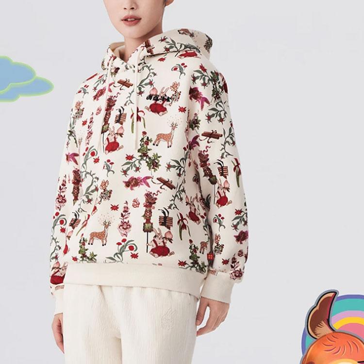 Li-Ning Новогоднее издание, свободная толстовка с капюшоном с мультяшным принтом, женские топы Off-White AWDT056-7
