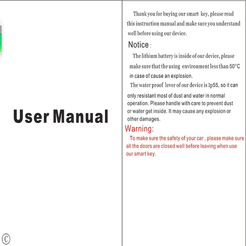уведомление:Подходит для всех оригинальных автомобилей с функцией запуска с одним ключом, не подходит для всех ручных автомобильных ключей с прямым штекером.