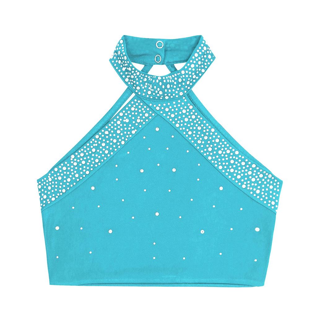 Девочки Танцевальный Жилет Холтер Без Рукавов Открытая Спина Дизайн Блестящие Стразы Перекрещенные Лямки Топ