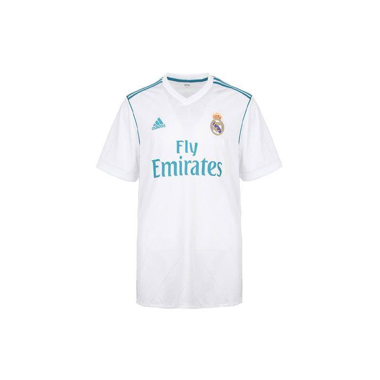 Adidas Домашняя майка сезона 17-18 "Реал Мадрид" с буквенным логотипом и полосками, мужские топы белого цвета AZ8059