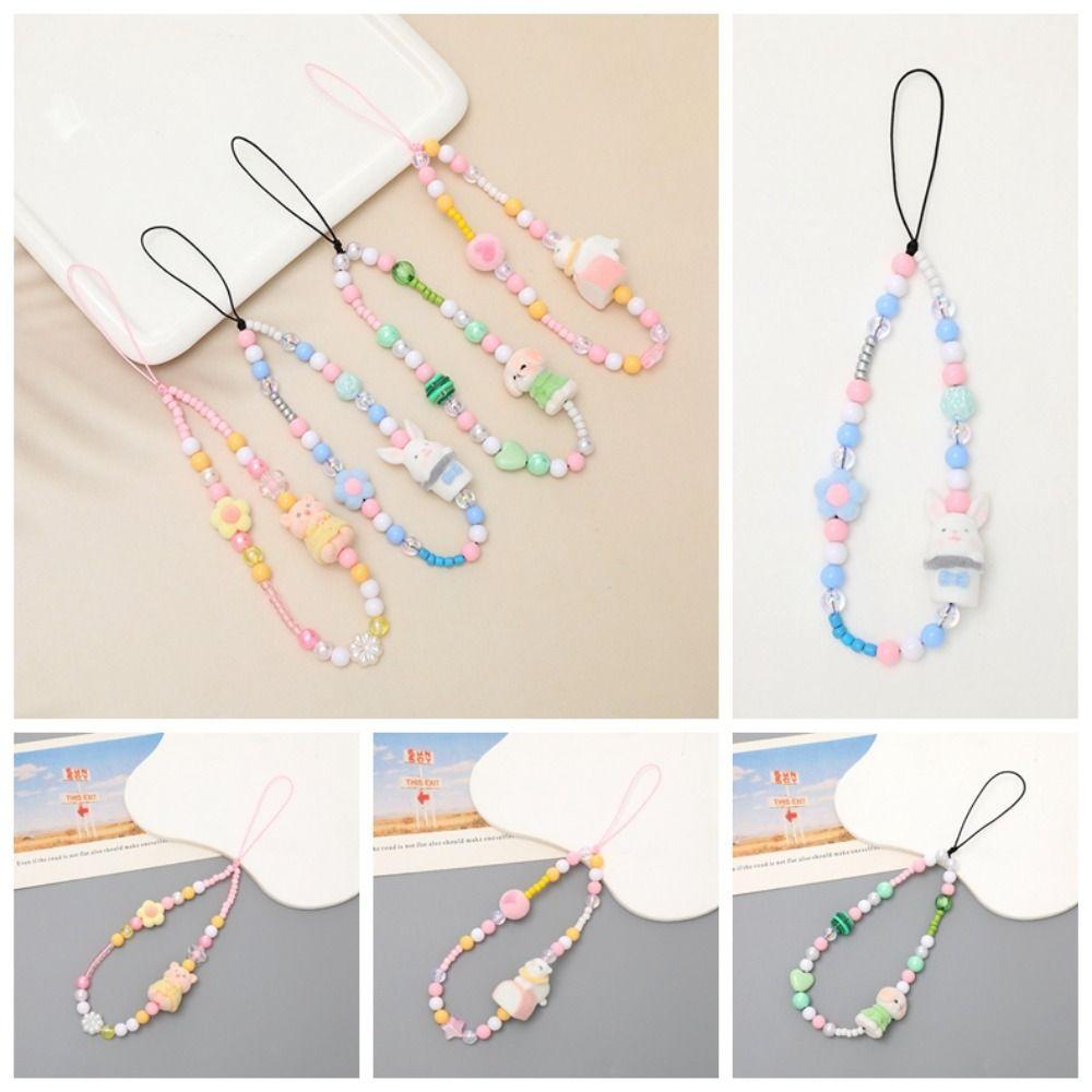 Sling Cartoon Beaded Phone Chain Short Mobile Phone Lanyard Phone Charm Beads Car Key