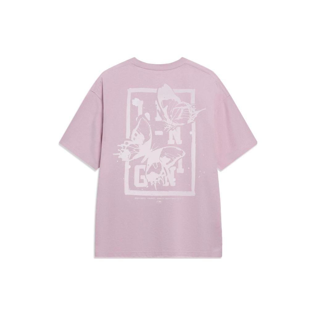 Li-Ning Серия китайской культуры с цветочным принтом, облегающая футболка с круглым вырезом и короткими рукавами, мужские топы, розовые AHST203-5