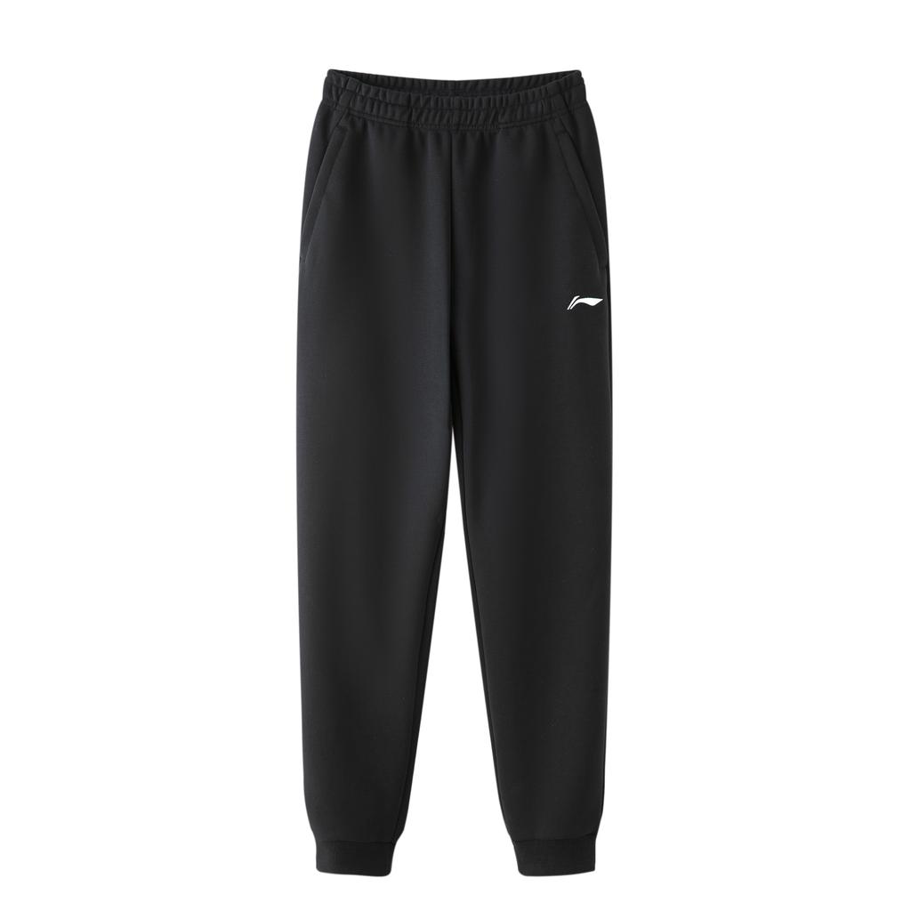 Li-Ning Чистый цвет с вышивкой логотипа, повседневные конические вязаные спортивные брюки, мужские брюки черного цвета AKLT619-1