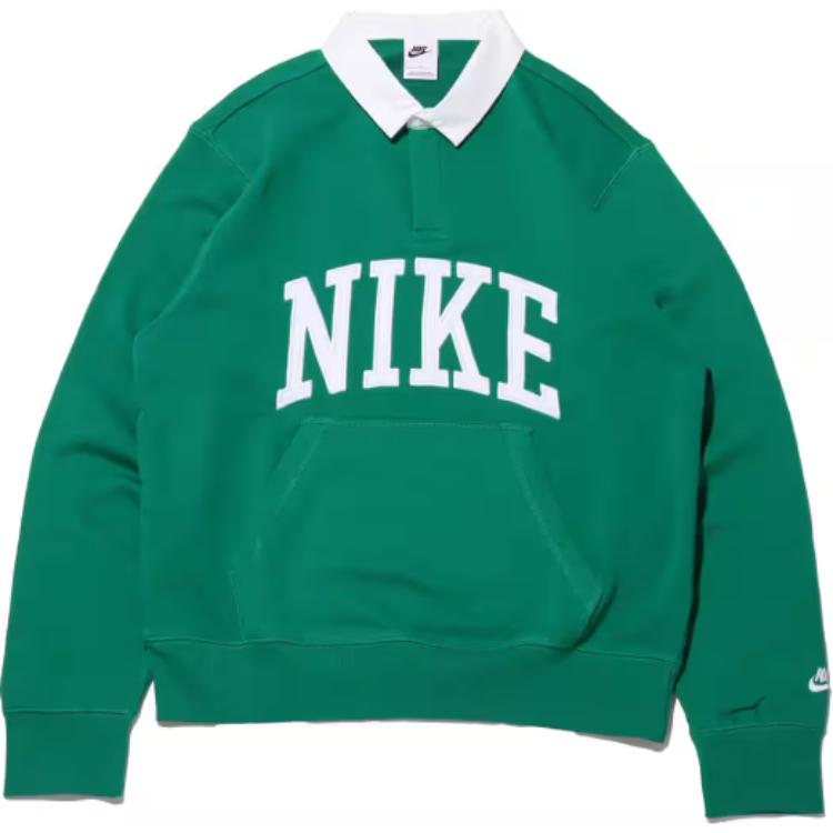 Nike Футболка-поло с длинным рукавом и принтом в виде буквы, мужская, зеленая, FN3113-365