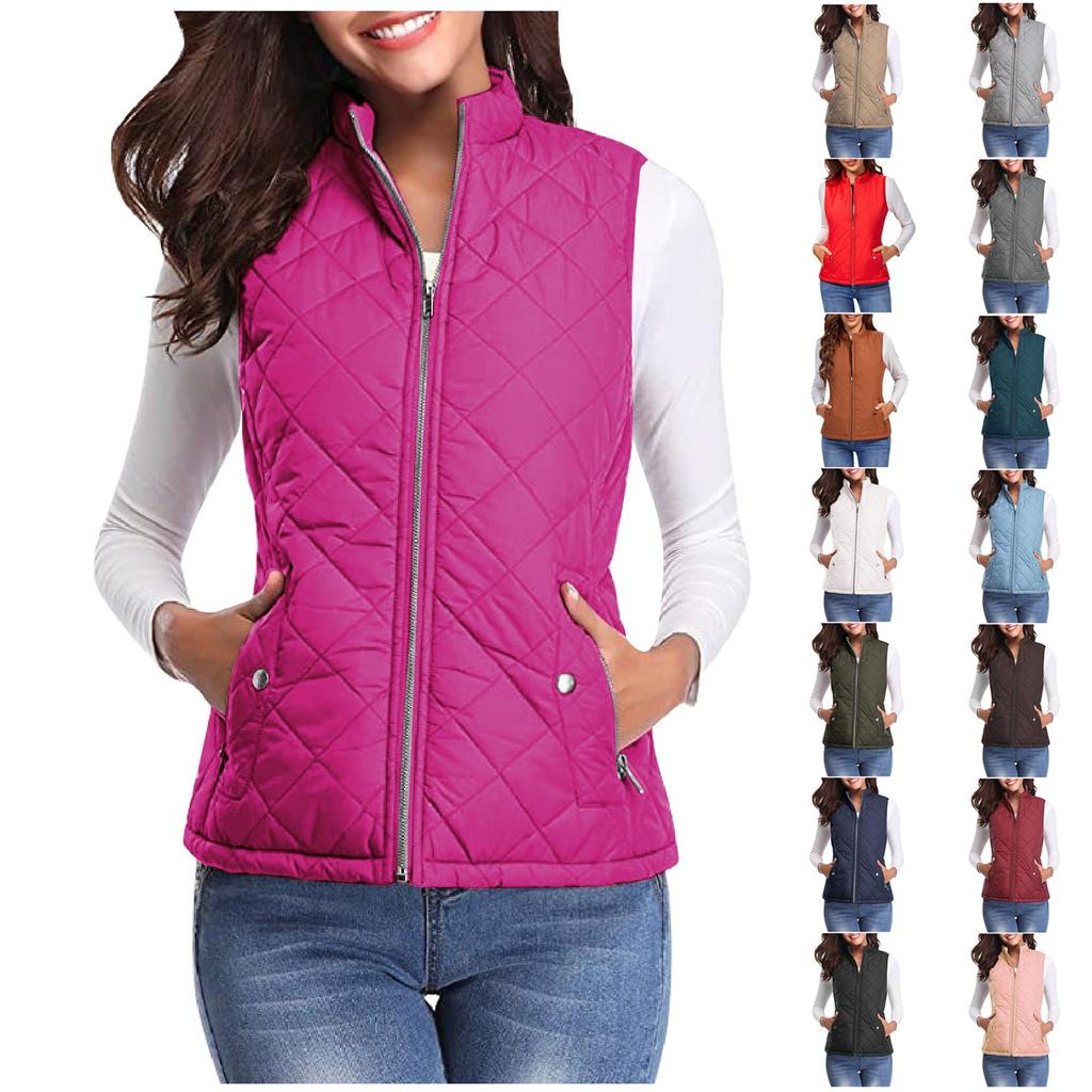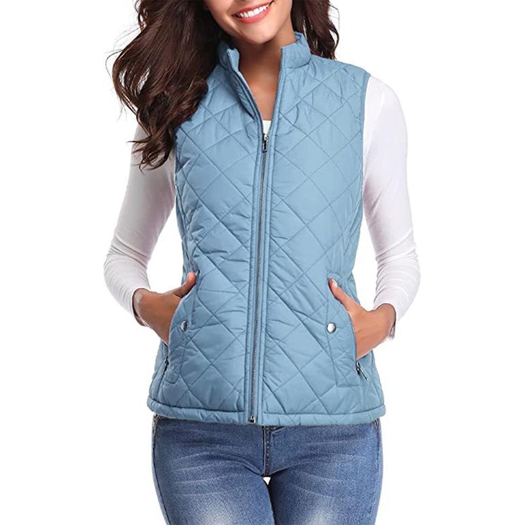Женская мода, повседневный однотонный теплый хлопковый жилет с воротником-стойкой на молнии и карманом, пальто