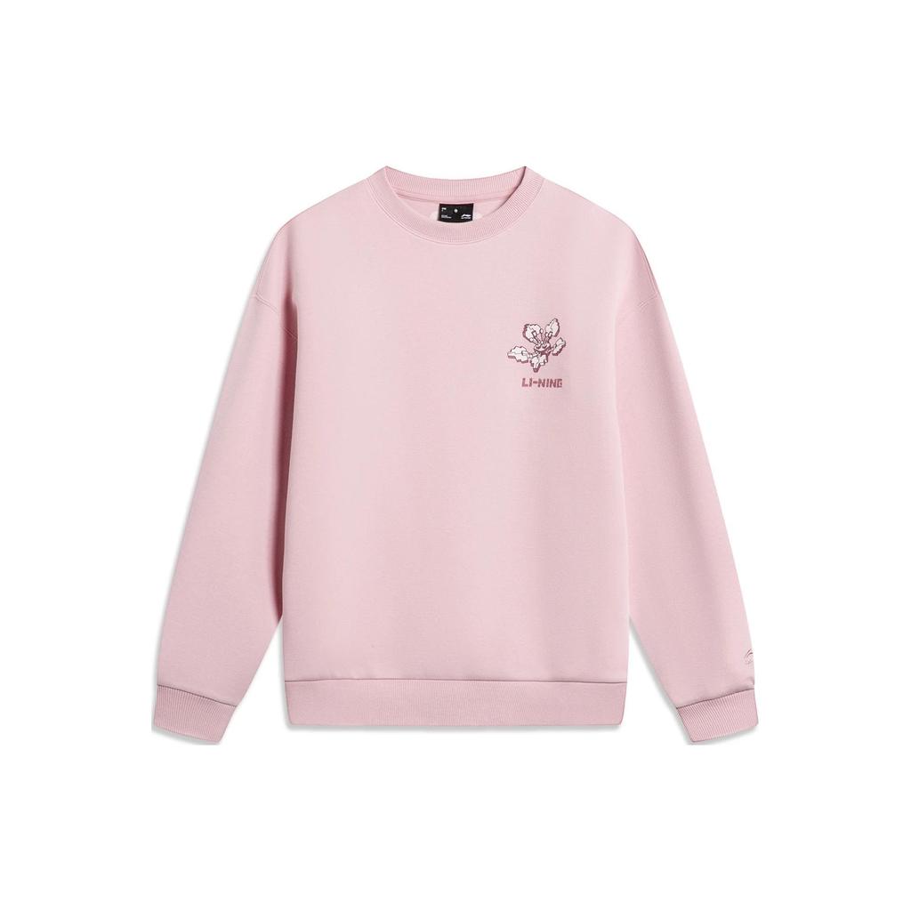 Li-Ning Серия китайской культуры с цветочным принтом алфавита, свободный пуловер, свитшот, женские топы, светло-фуксия, AWDT760-1