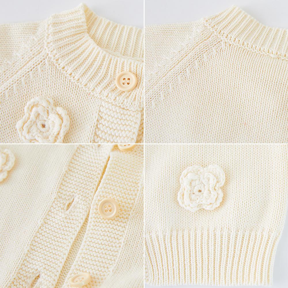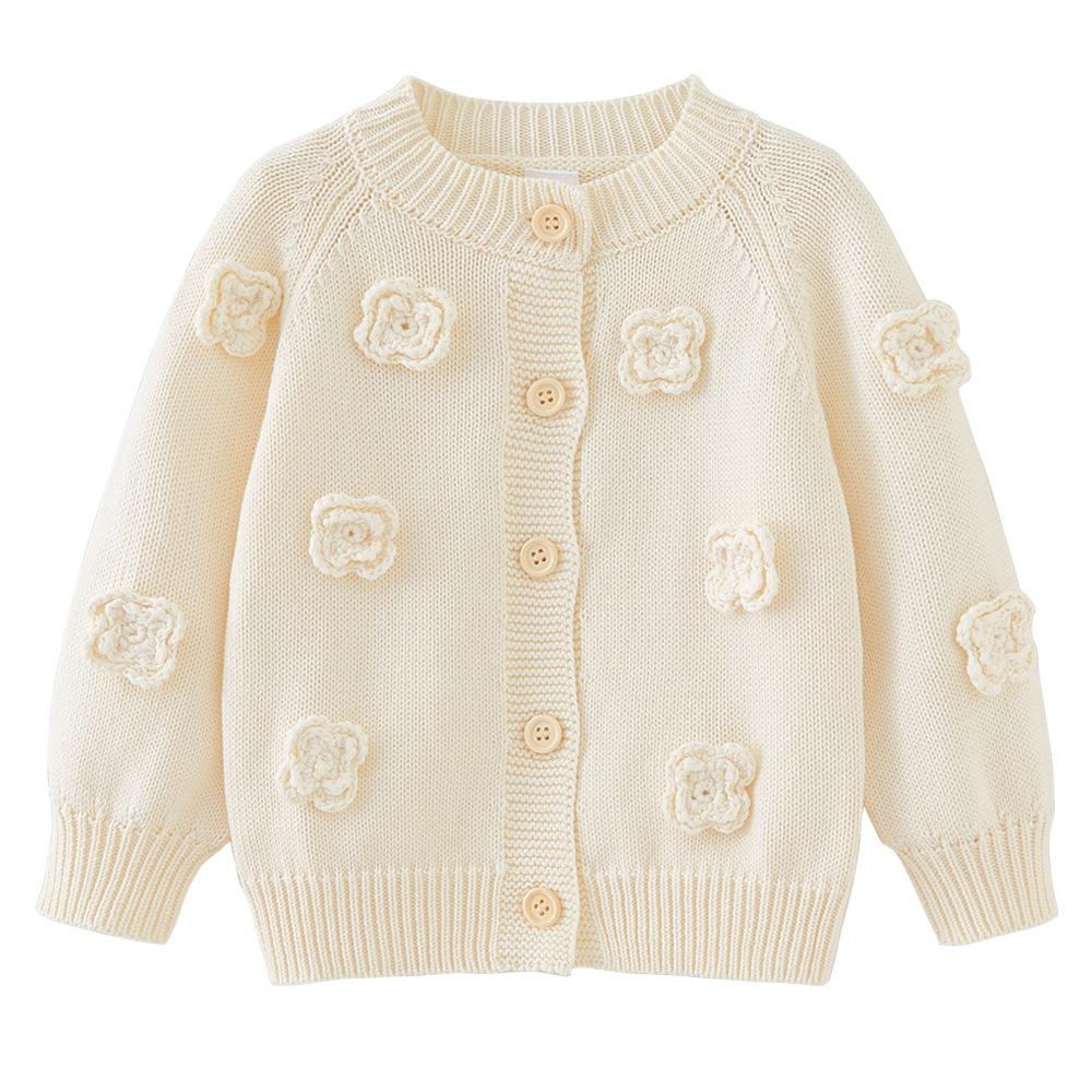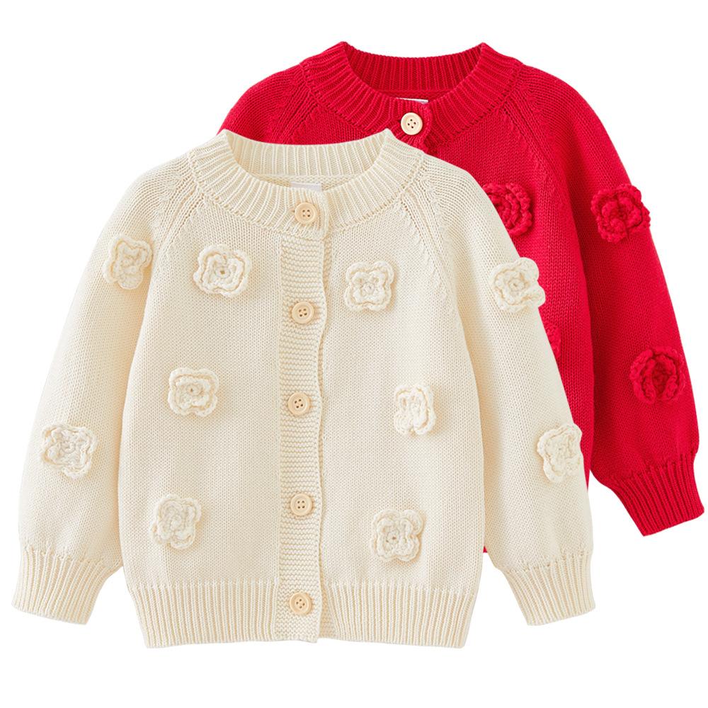 Весенне-осенний детский вязаный кардиган с круглым вырезом, ручной работы, с цветочным узором, с длинными рукавами, куртка, свитер для девочек