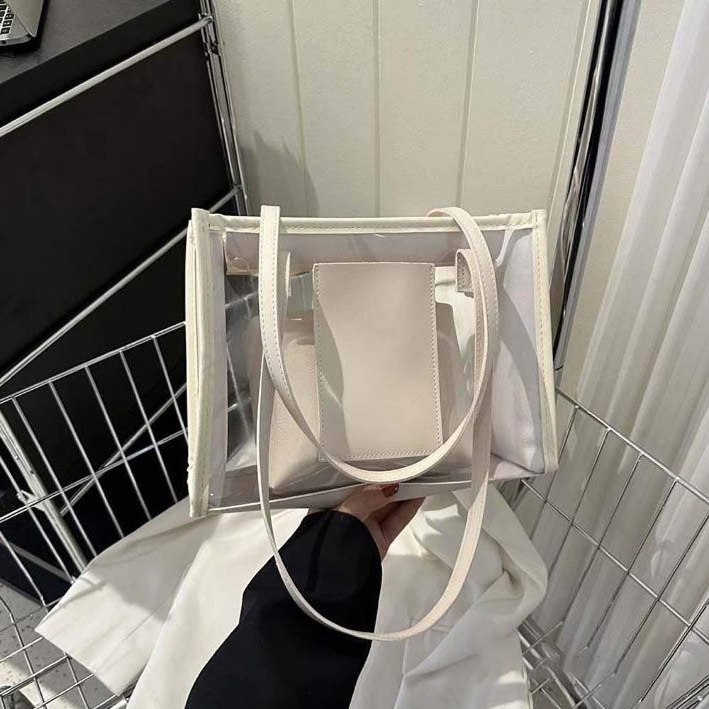 2pcs/set Elegant Transparent Jelly Bag PU Leather Handbag Clutch Bag Clear PVC Shoulder Bag Travel