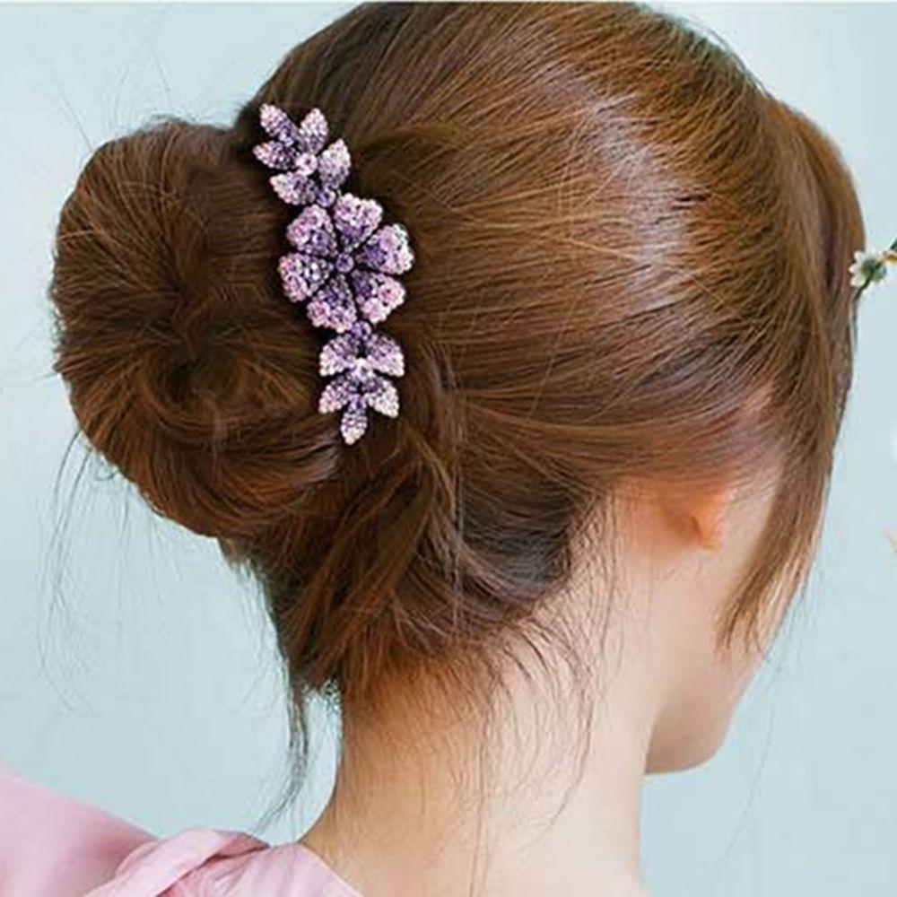 Bride Hair Jewelry Bride Headpiece Women Headdress Hairpin Hair Comb Inlaid Flower Shiny Rhinestone
