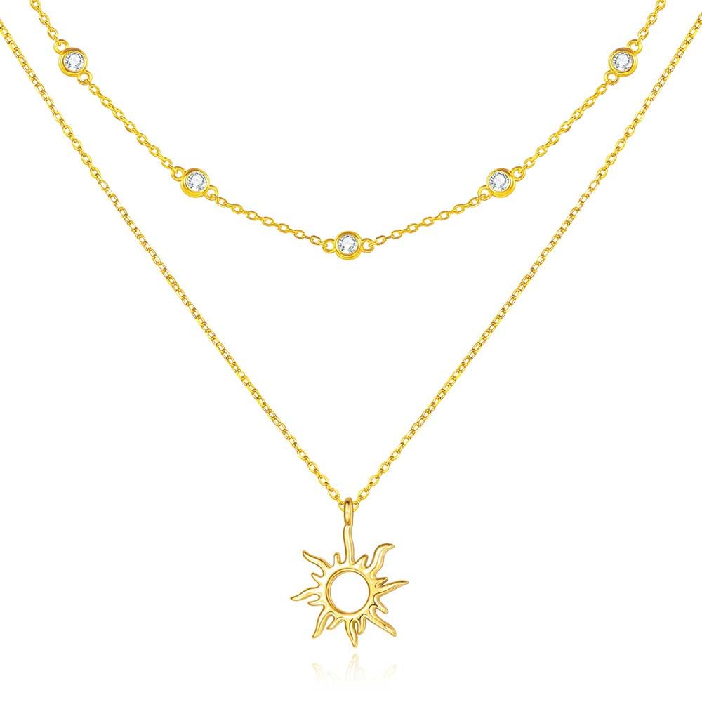 Двойной блеск подчеркивает ваше очарование. Прекрасная гармония двух цепочек и мотива солнца создает простое, но эффектное двойное ожерелье.. Дизайн солнца символизирует положительную энергию и светлое будущее. Носительница будет выглядеть женственно и энергично, что подчеркнет ее очарование.