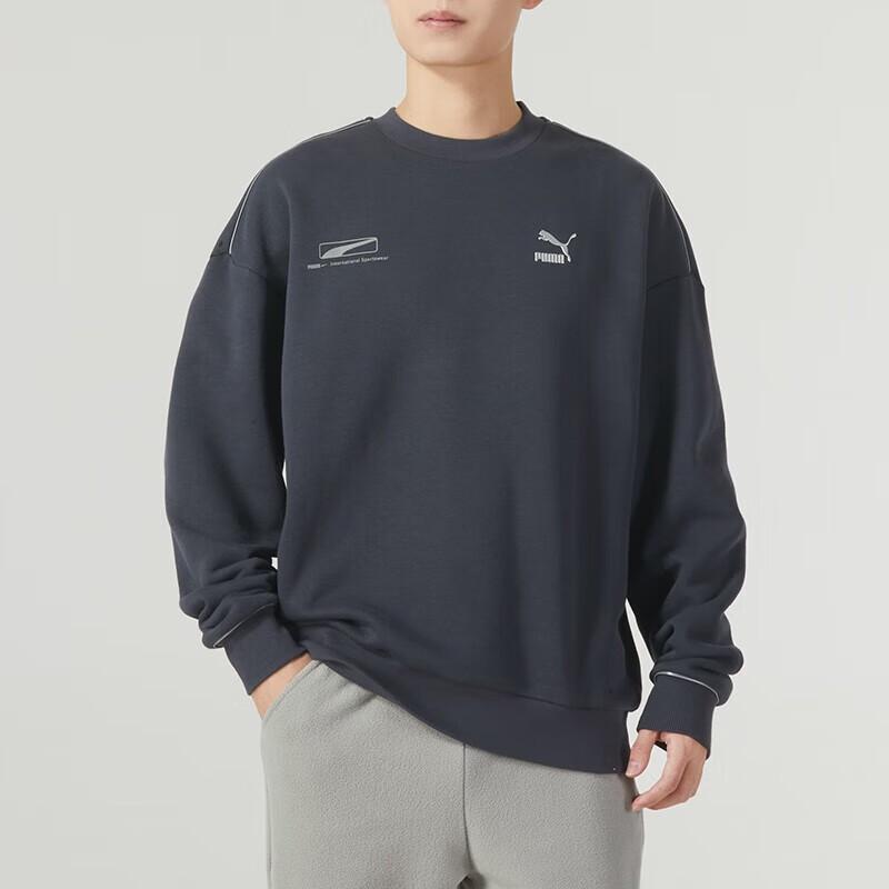 Puma Однотонный спортивный свитер с круглым вырезом, унисекс, свитшот, темно-синий 625075-17