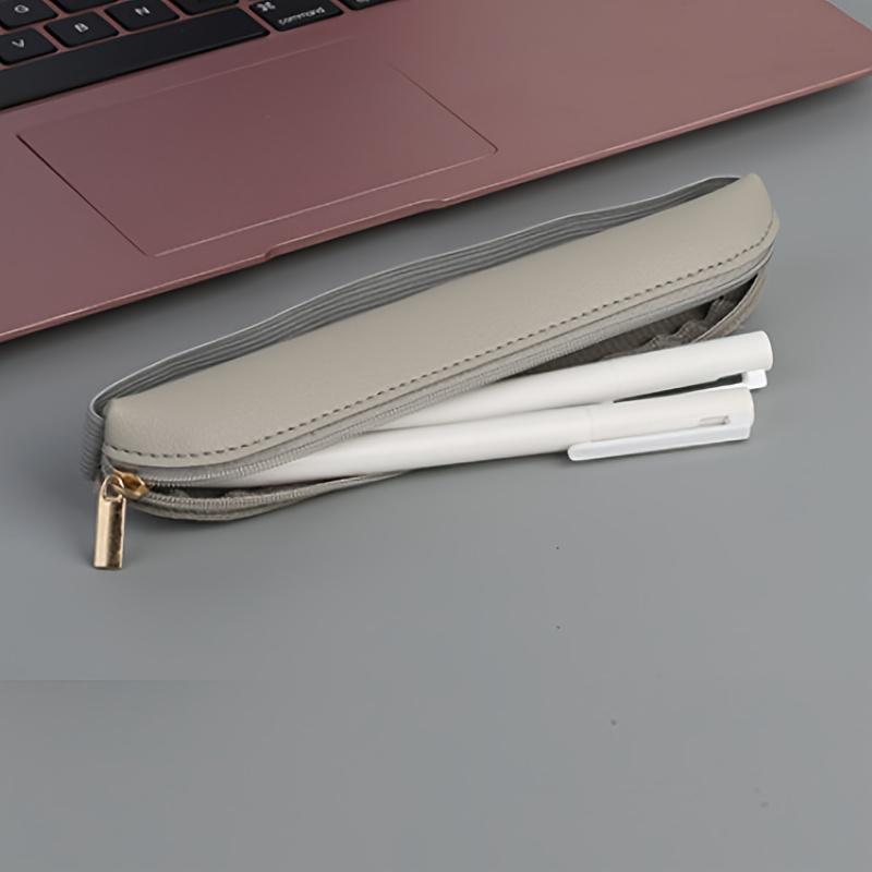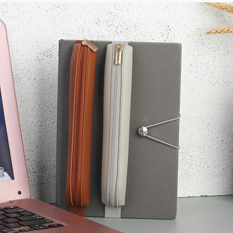 1 шт. Чехол для ручек из искусственной кожи на молнии, Портативный эластичный рукав для блокнотов, Неправильной формы, Ежедневные офисные принадлежности