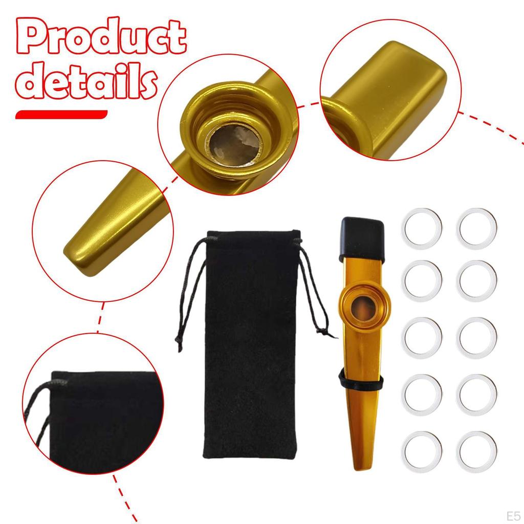 - 【Привлекательный дизайн】: Этот казу изготовлен из алюминиевого сплава и поставляется с сумкой для хранения, что делает его простым и удобным для использования детьми.. Его уникальное звучание и легкость игры отлично подходят для того, чтобы пробудить интерес ребенка к музыке.