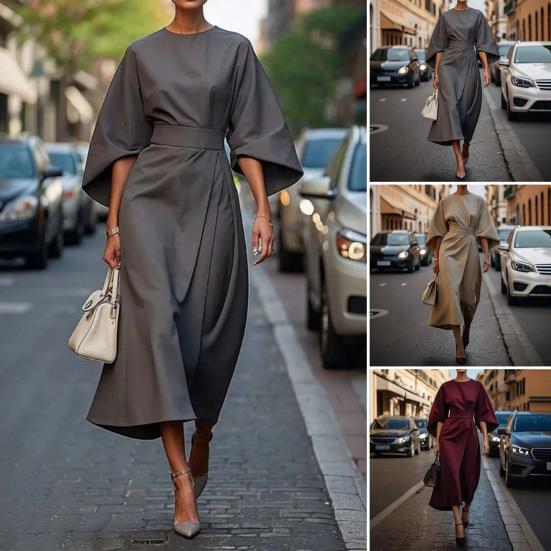 Лестный силуэт: Оцените рукава-летучая мышь этого стильного платья, которые добавят изящества и улучшат ваш общий образ.. Зауженная талия подчеркивает вашу фигуру, что делает его идеальным выбором для офиса, повседневных прогулок, вечеринок, свадеб и даже пляжного отдыха.