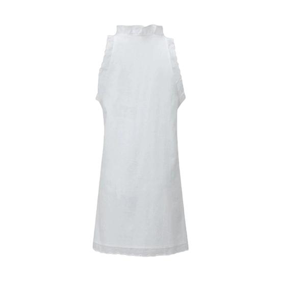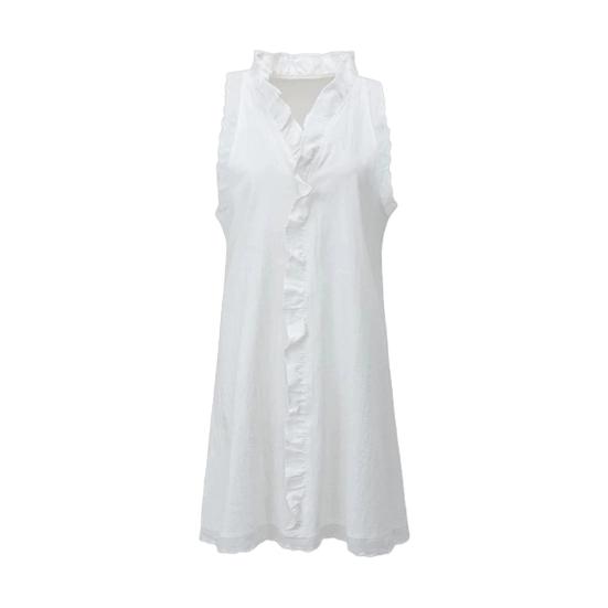 Представляем платье без рукавов с оборчатым воротником — идеальное сочетание элегантности и моды.. Изготовленное из высококачественного хлопка и льна, это платье обеспечивает прохладу и воздухопроницаемость, что делает его идеальным для различных случаев..