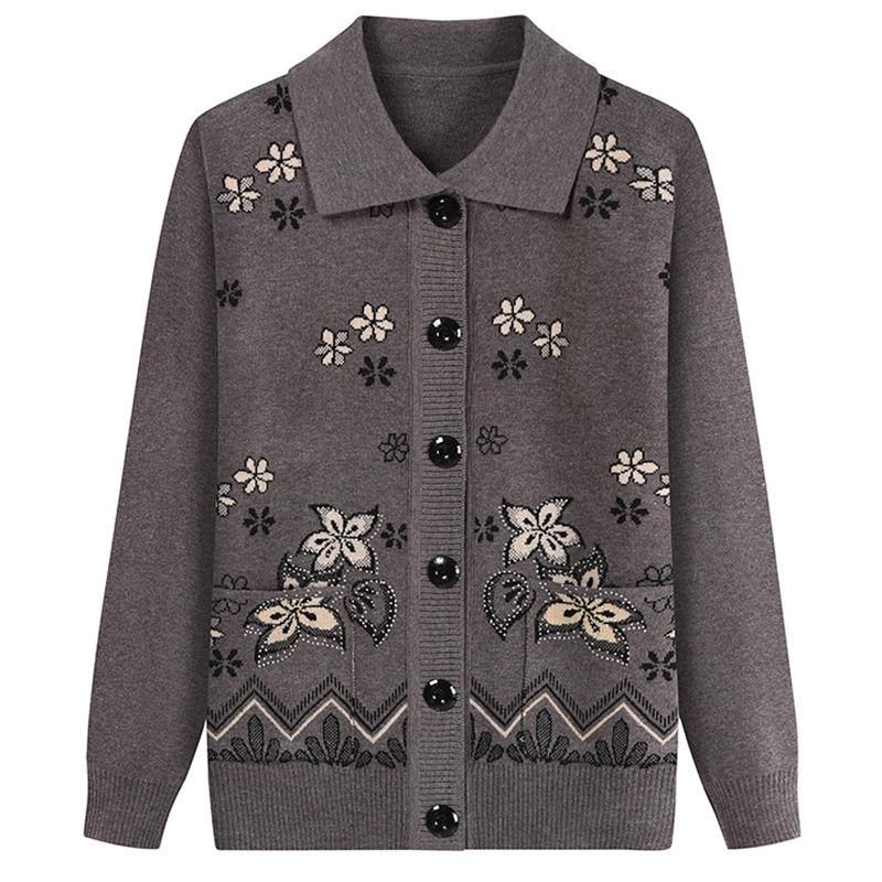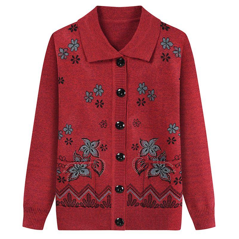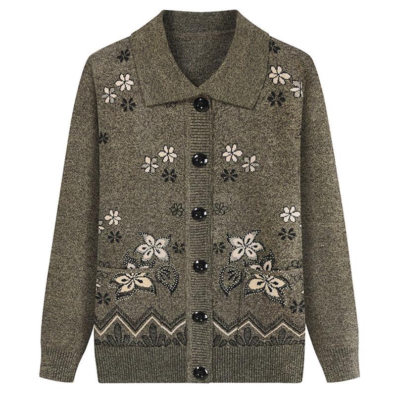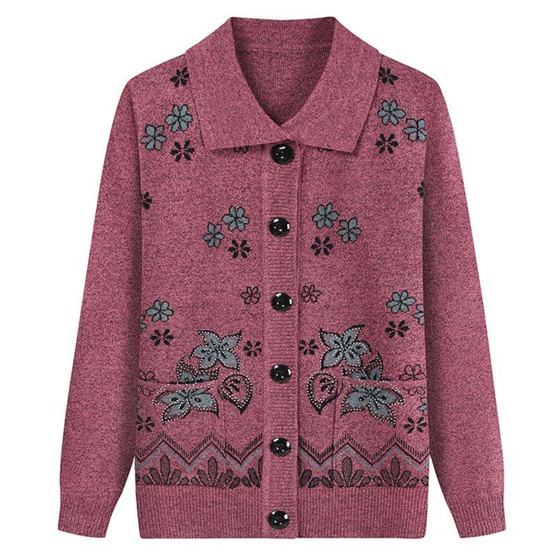 Одежда для пожилых женщин Плюс бархат Мамин вязаный кардиган Осень и зима Теплый свитер для женщин Утепленная куртка