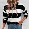 Новый свободный теплый женский свитер с круглым вырезом, черно-белый полосатый вязаный пуловер