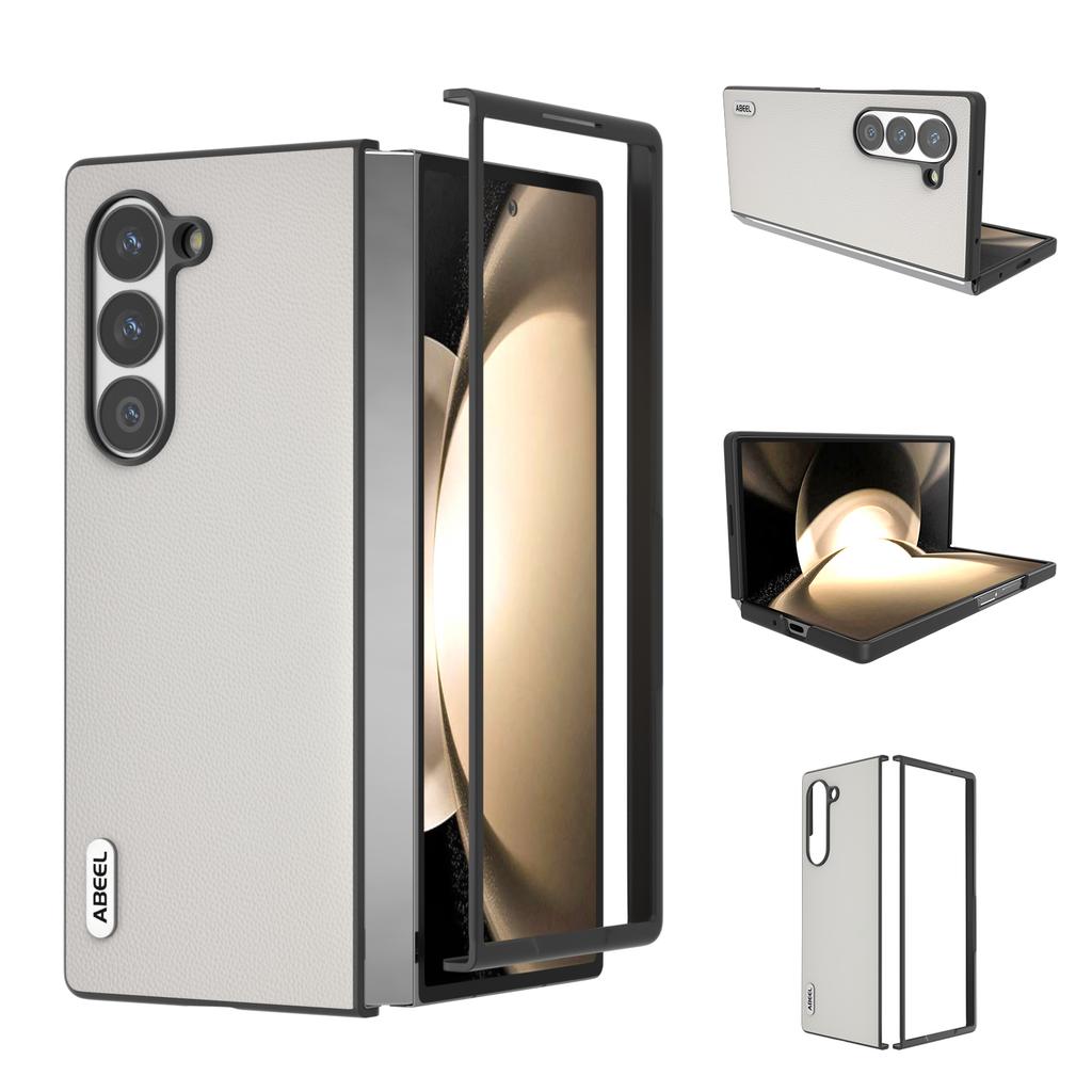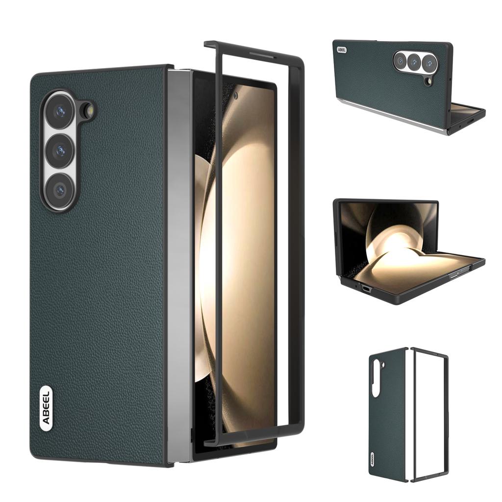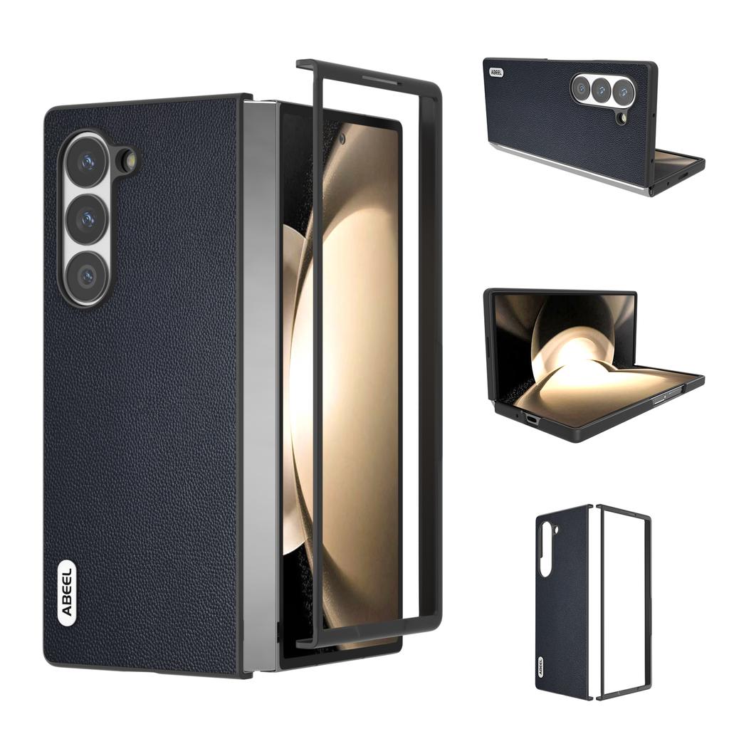 For Samsung Galaxy Z Fold6 5G Case Genuine Cow Leather PC Phone Cover Black Edge