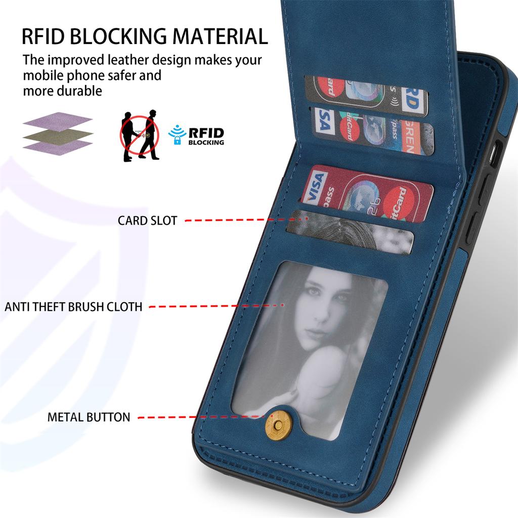 N.BEKUS For iPhone 16 Pro Max Card Slots Case RFID Blocking Leather+TPU Kickstand Phone Cover