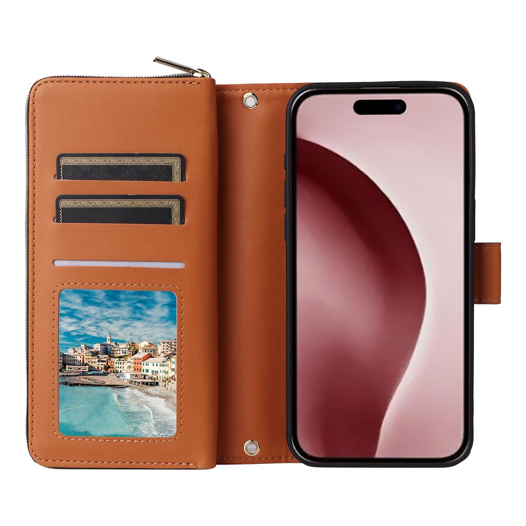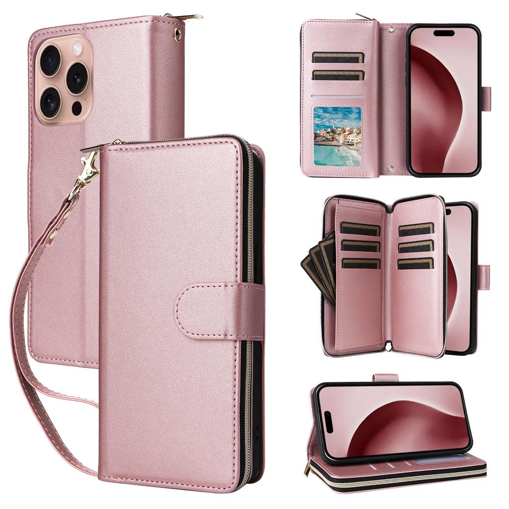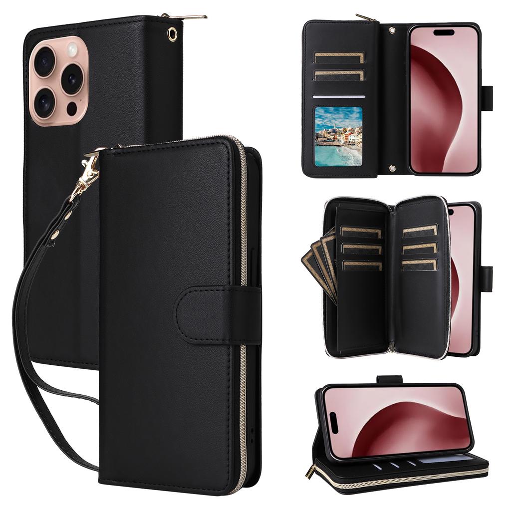 R20 Чехол для iPhone 16 Pro Max на молнии, из ПУ кожи, чехол для телефона с 9 слотами для карт