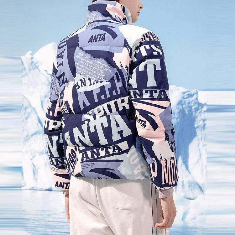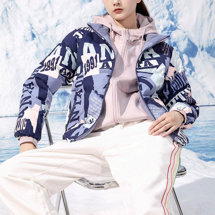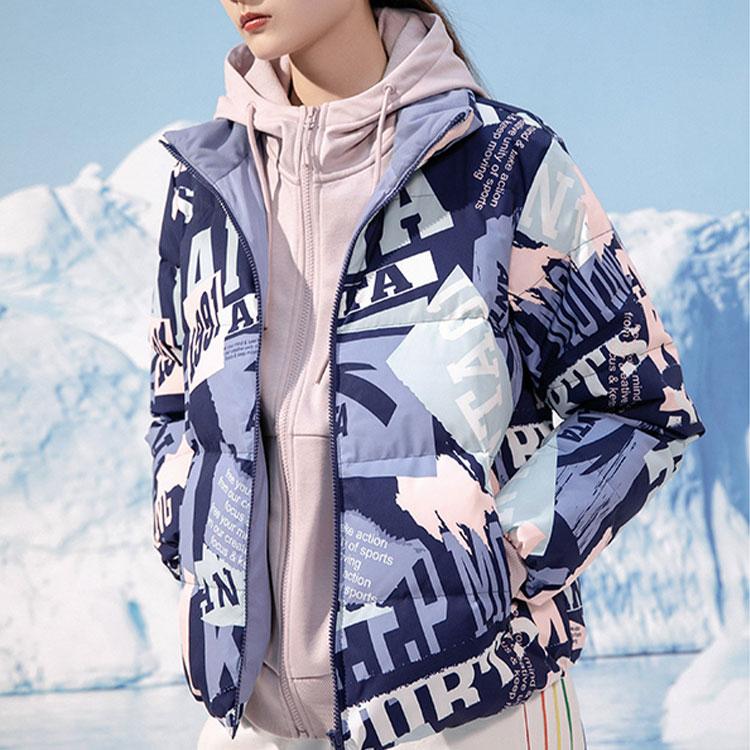 Anta Спортивная теплая куртка-пуховик с логотипом и принтом по всей поверхности, женская верхняя одежда, весна-синий 162148909-2