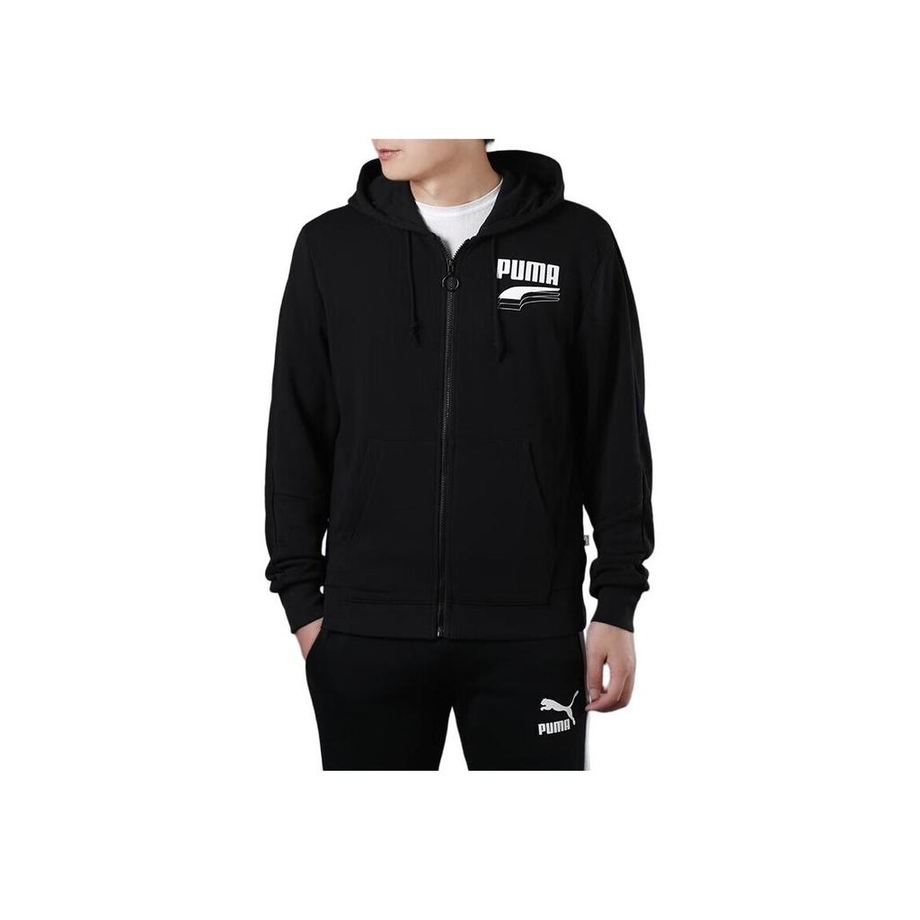 Puma Однотонная мужская толстовка с капюшоном и логотипом бренда на молнии, черная 582733-21