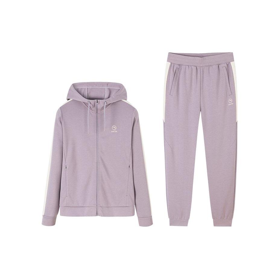 Anta Цветной блок, капюшон, застежка-молния, брюки с эластичным поясом, повседневный комплект, женские комплекты, фиолетовый 962317707-4