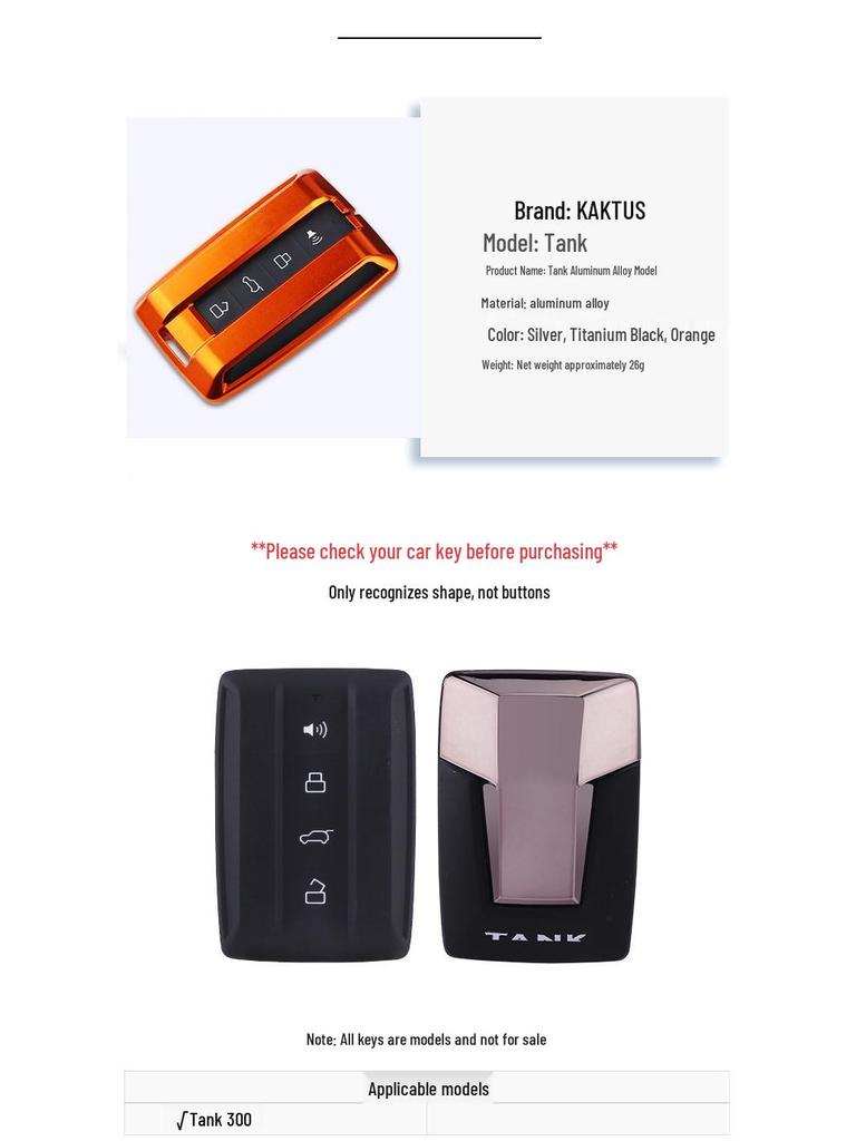 KAKTUS Чехол для ключа автомобиля из алюминиевого сплава для Tank 300 - Высококачественный накладной чехол
