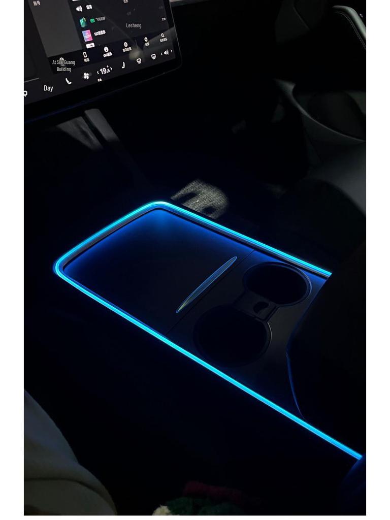 Tesla Model 3/Y Подсветка салона с управлением через приложение, светодиодная панель консоли для подстаканников - 64 цвета
