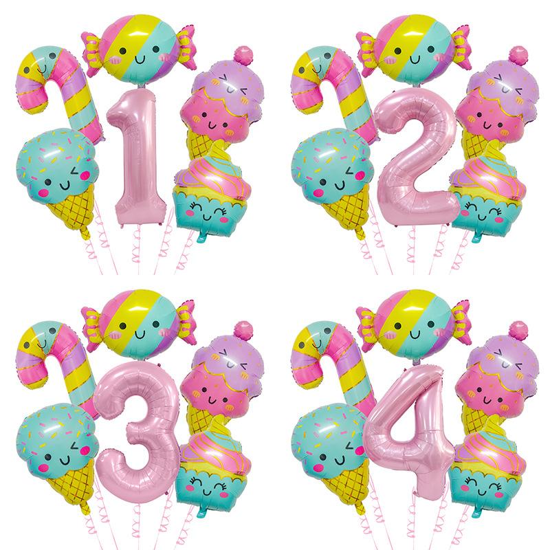 New Cute Candy Ice Cream Balloon Set Children'S Birthday Decoration Scene Arrangement Aluminum Mold Balloon Supplies