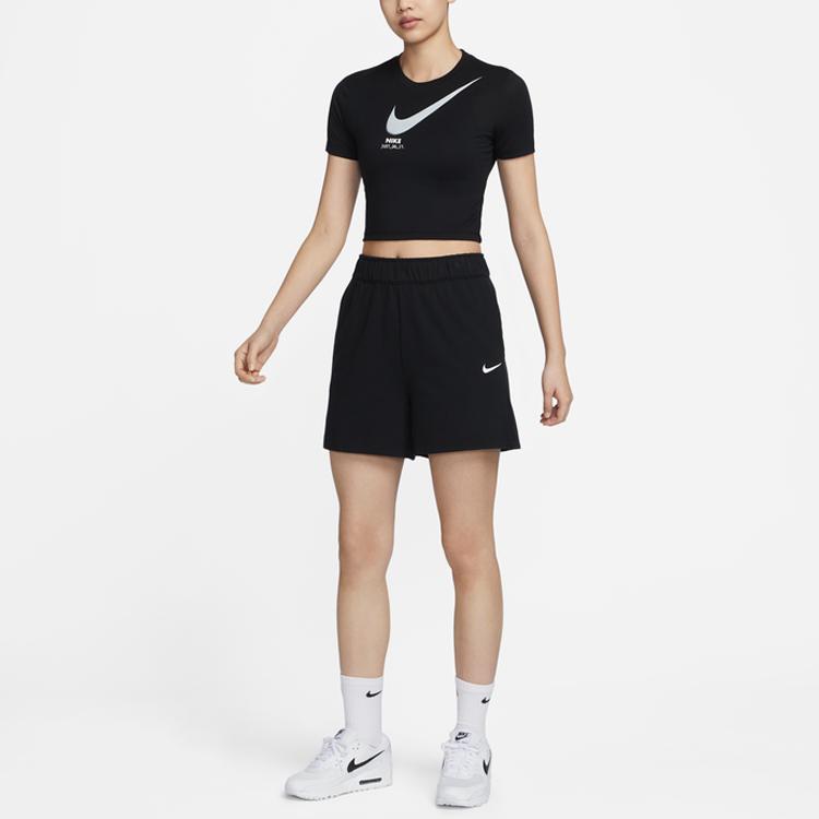 Nike Футболка с коротким рукавом и принтом логотипа в виде буквы, женская, черная, DZ3750-010