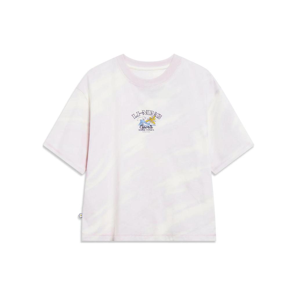 Li Ning Ice Cream Effect Letter Landscape Print Round Neck Pullover Short Sleeve T Shirt Women Tops Lavender AHST194-6